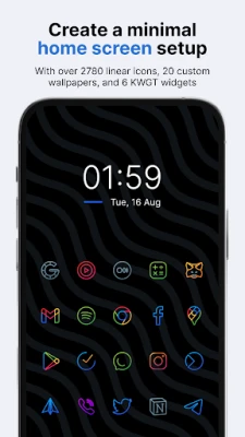Caelus icon pack has 4,130 icons, 20 custom wallpapers, and 6 KWGT widgets, so it’s all you need to personalize your phone how you like it. For the price of one app, you get content from three different apps. Caelus icons are linear, and the color palette is vibrant, so it goes well with dark wallpapers. Caelus icon pack is made on a 24x24 px grid with 1 px line thickness, with special attention to size for every icon, so you don't have to worry about the size or line thickness consistency. *To apply KWGT widgets, you need KWGT and KWGT Pro apps.