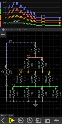 Build any circuit, tap play button, and watch dynamic voltage, current, and charge animations. This gives you insight into circuit operation like no equation does. While simulation is running, adjust circuit parameters with analog knob, and the circuit responds to your actions in real time. You can even generate an arbitrary input signal with your finger!
