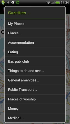 * display gazetteer lists of commonly needed places like hotels, eating places, shops, banks, things to see and do, golf courses, medical facilities. Show how to get there from your current location.